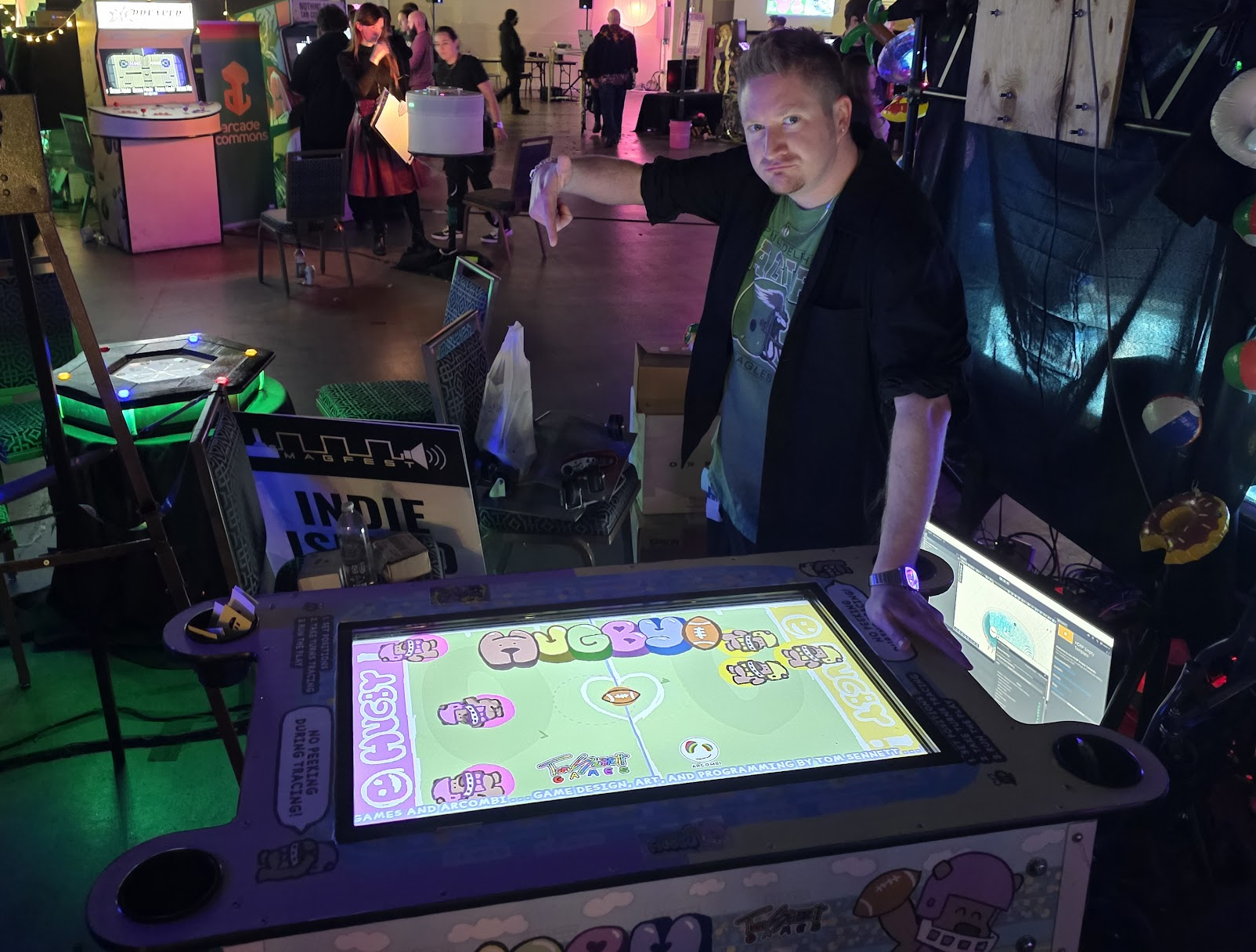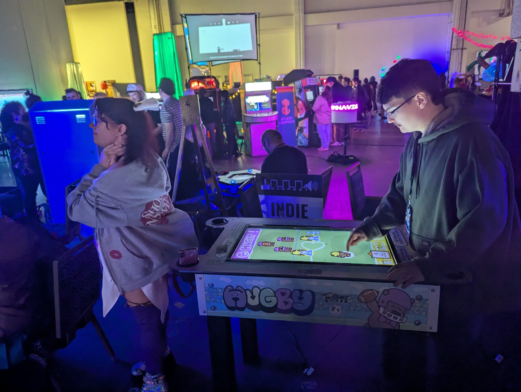 Hugby was selected for and made its debut at the MAGFest Indie Arcade in January 2026.