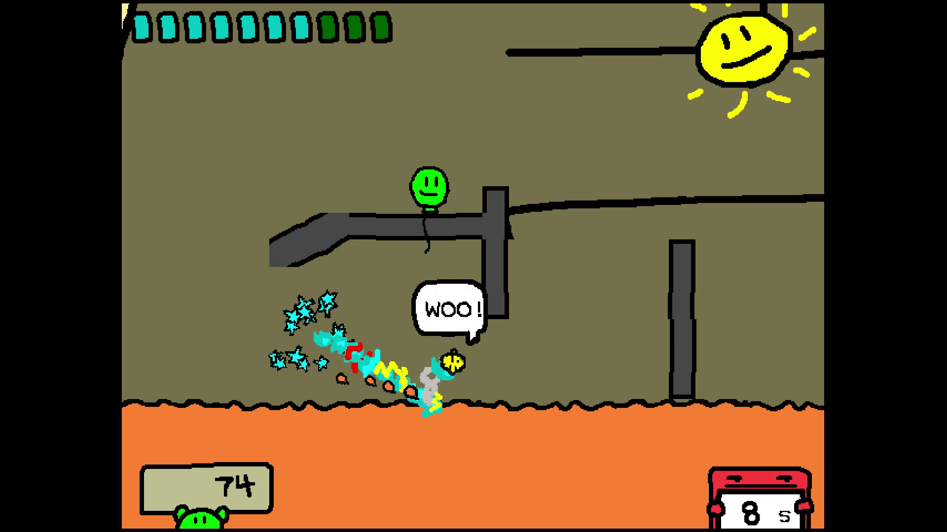 I was still winging it on everything visually though. The game's color palette could be more refined, there are some incongruous character designs and effects. But overall it came together mostly how I envisioned it. People often compared it to Yoshi's Island, which was really flattering and to me interesting because that wasn't a game I was trying to emulate visually.